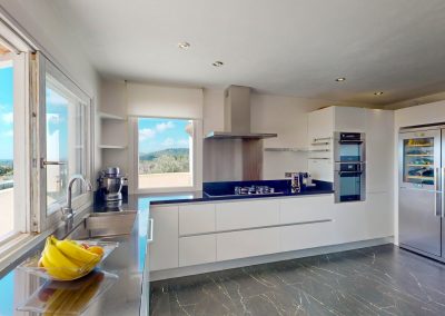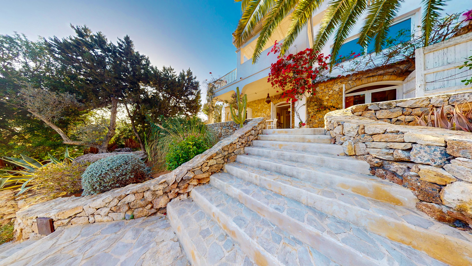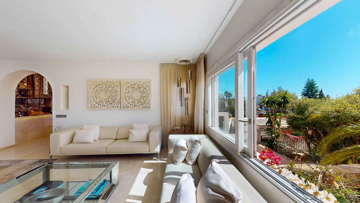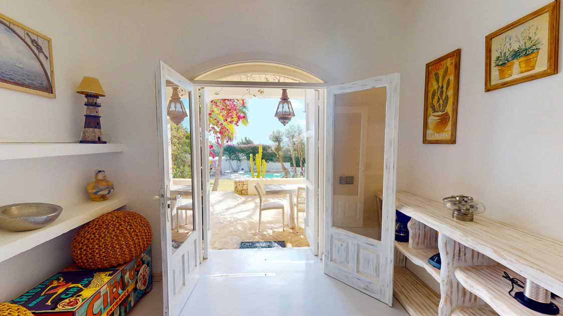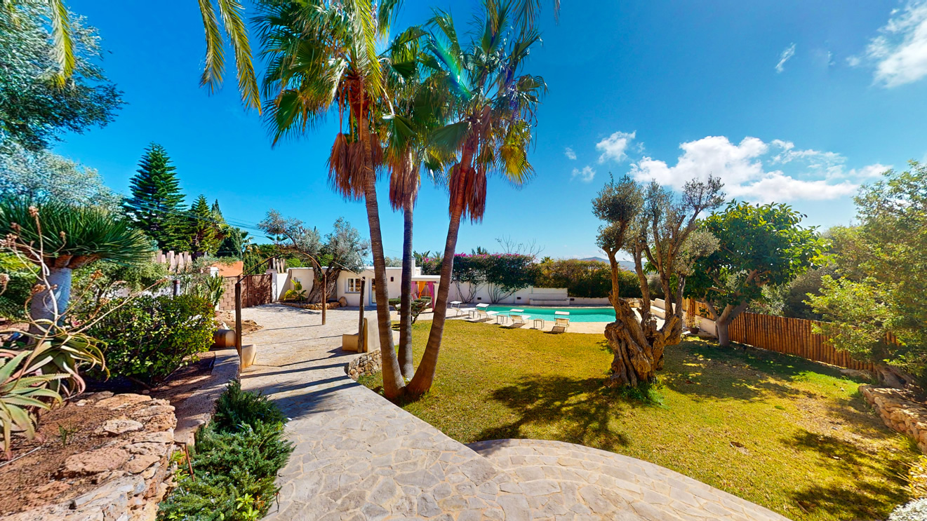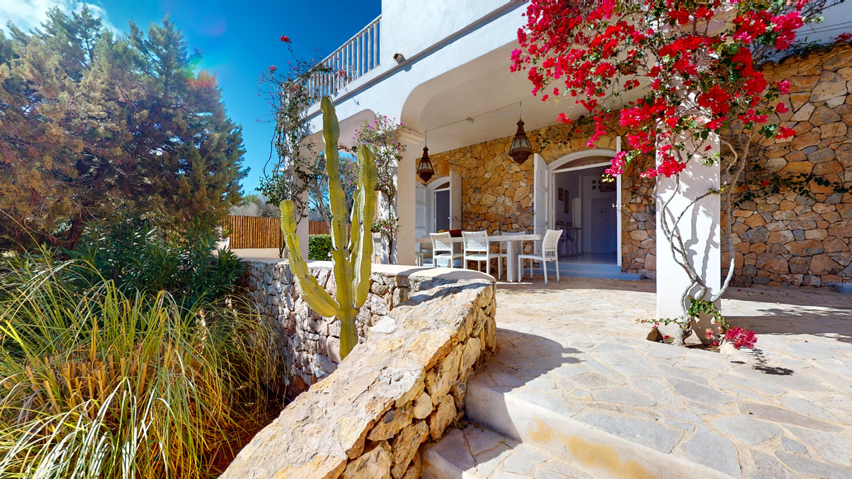 Desde cada ventana de la casa principal se puede disfrutar de impresionantes vistas al mar y a la isla de Formentera. Destaca por su gran luminosidad.