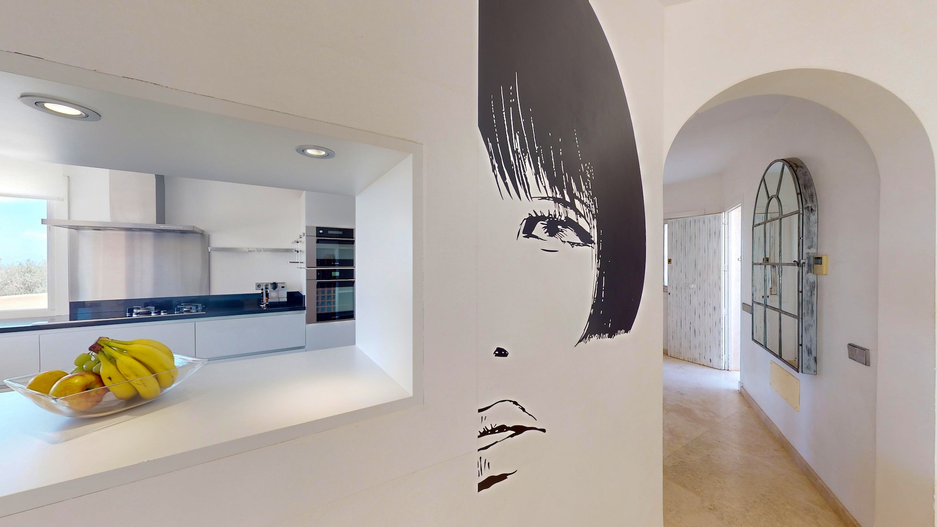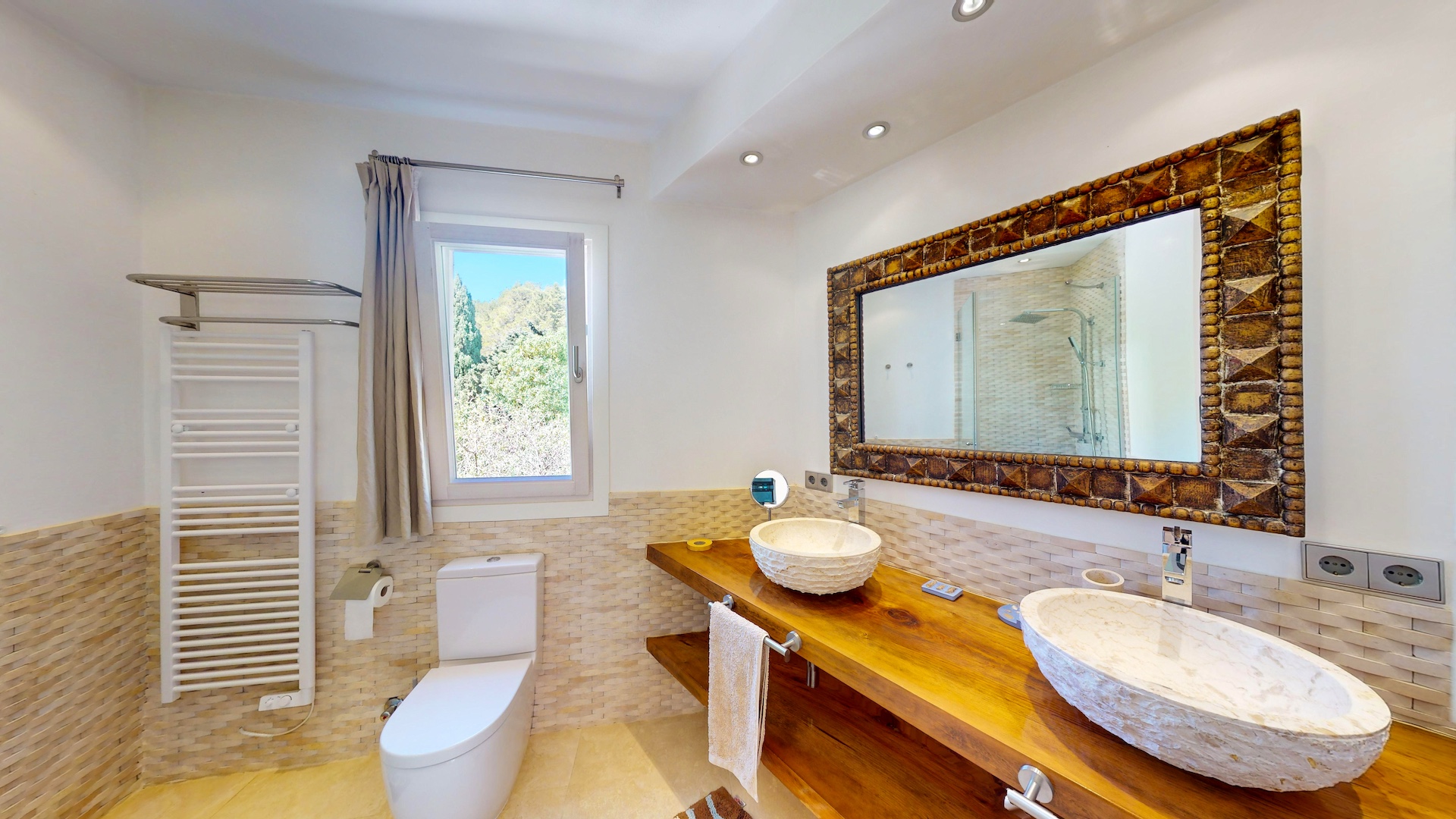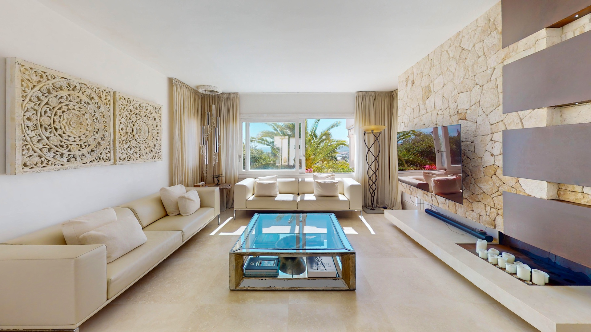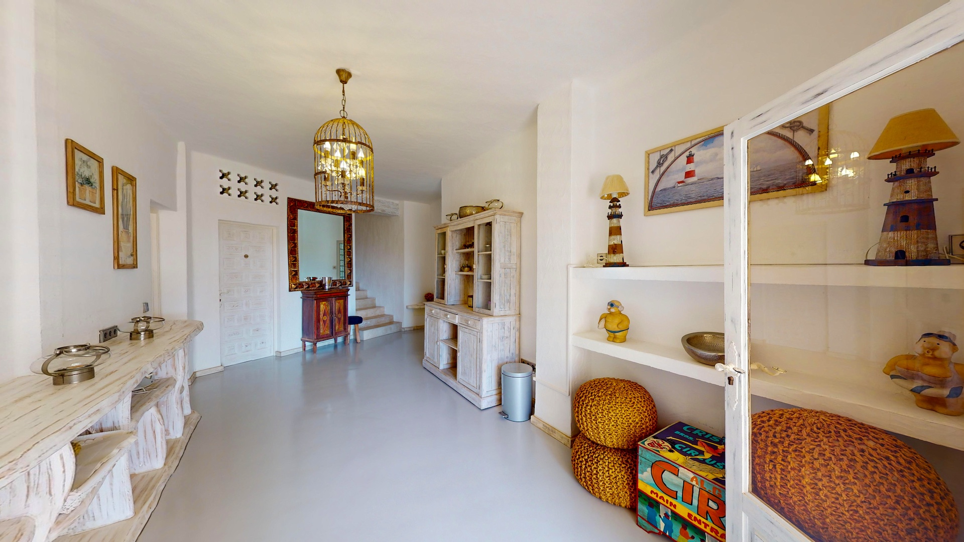 Desde cada ventana de la casa principal se puede disfrutar de impresionantes vistas al mar y a la isla de Formentera. Destaca por su gran luminosidad.