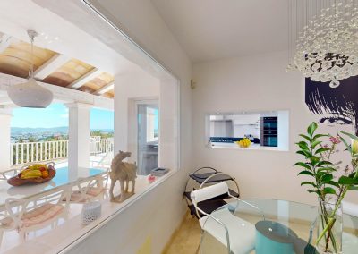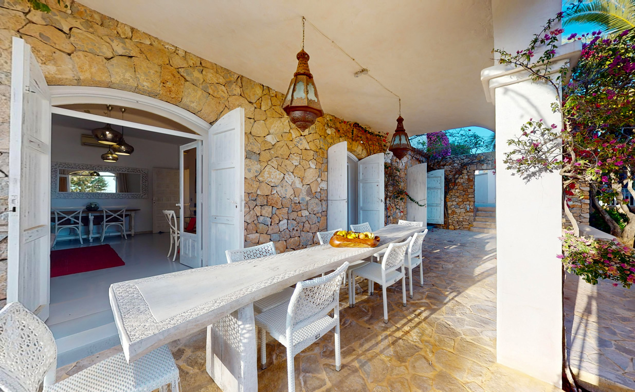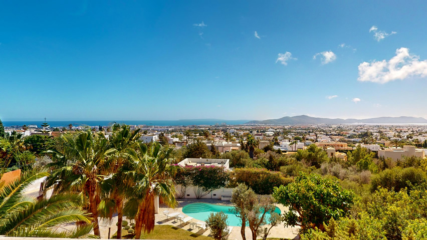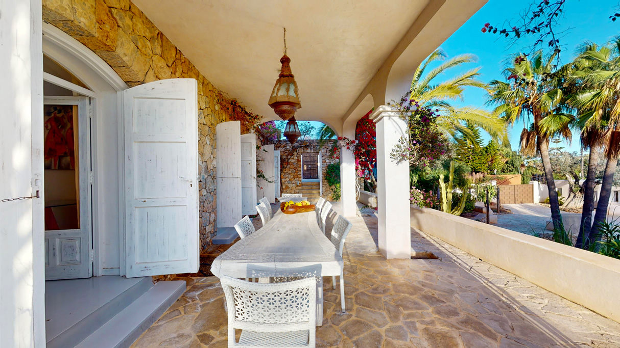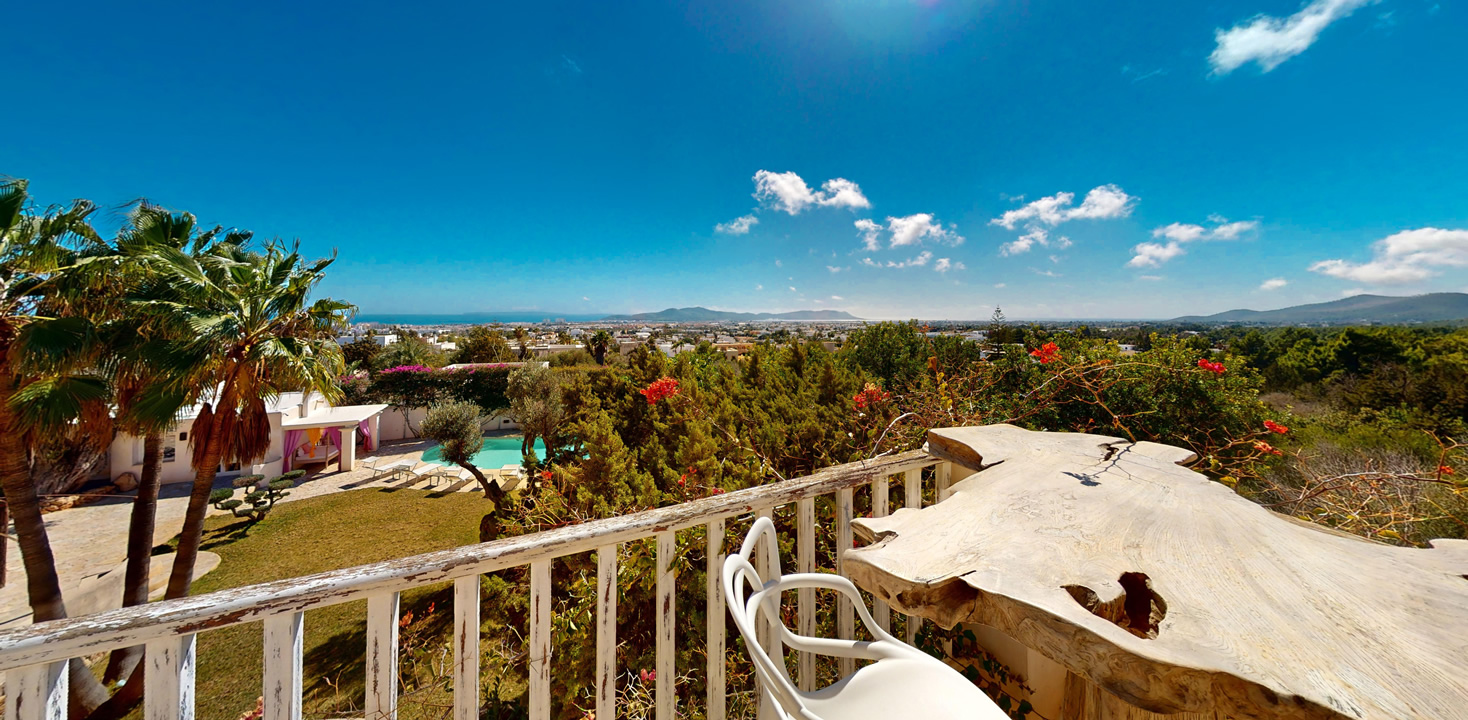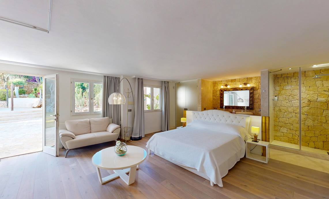 Desde cada ventana de la casa principal se puede disfrutar de impresionantes vistas al mar y a la isla de Formentera, añadiendo un toque de serenidad y belleza a cada rincón de la propiedad, que además se destaca por su gran luminosidad.