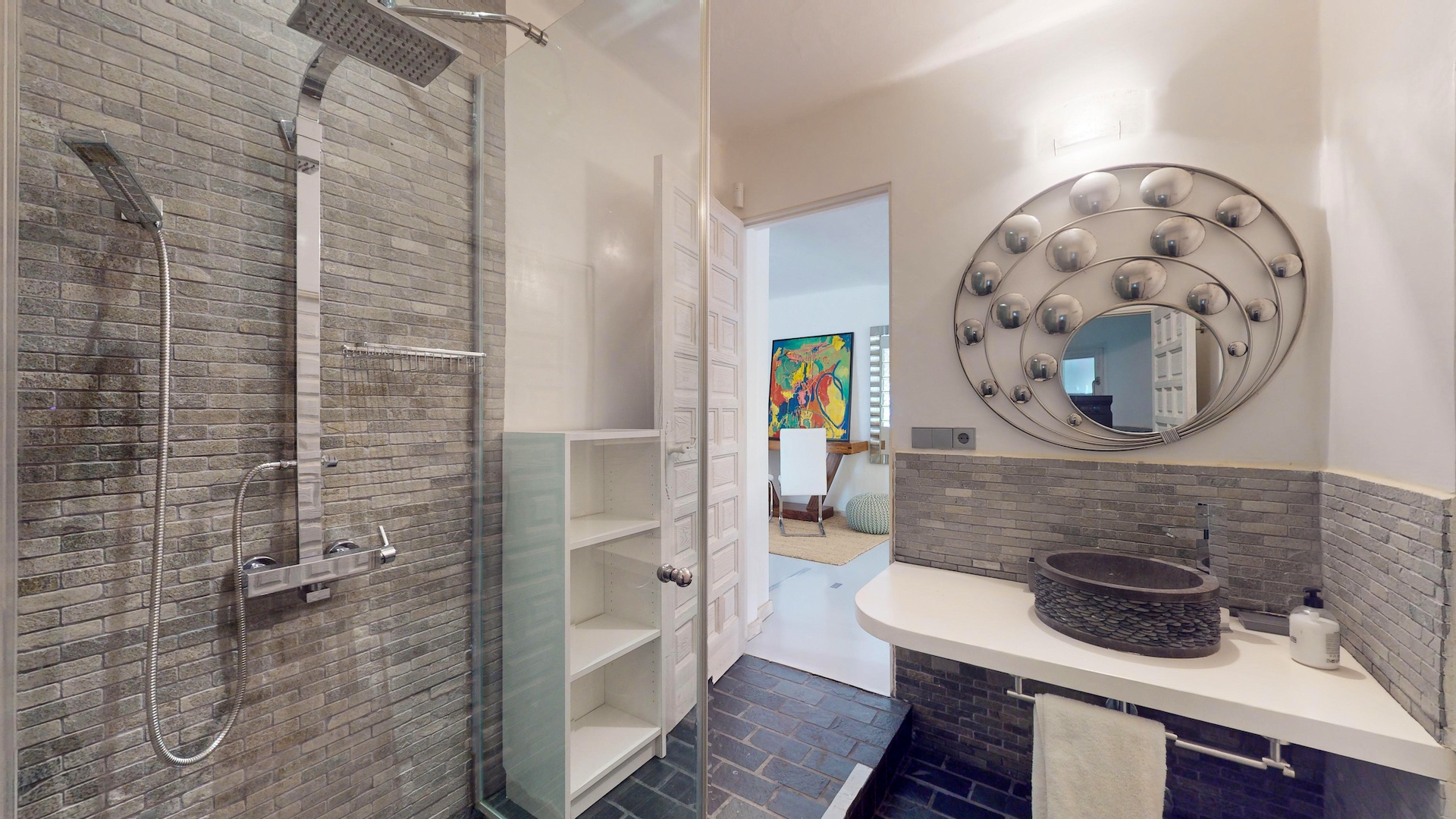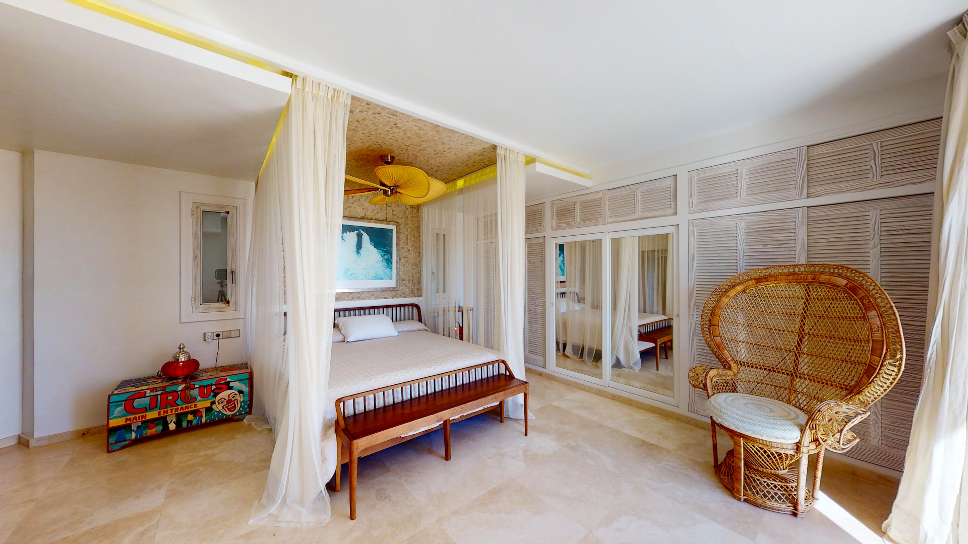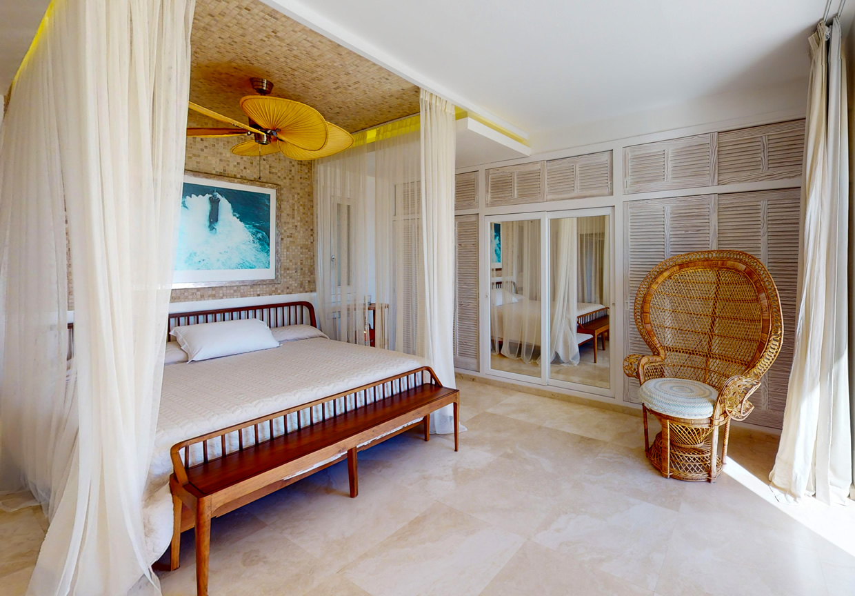 Con un total de 7 habitaciones o diferentes espacios, incluyendo una suite principal en la parte superior, un balcón con vistas a Formentera y 2 vestidores o habitaciones. En el nivel principal se encuentra una cocina totalmente equipada, una gran sala de estar ideal para compartir momentos en grupo, así como en su terraza con vistas directas al mar y a toda la ciudad de Ibiza.