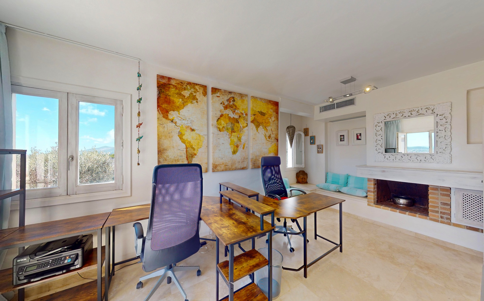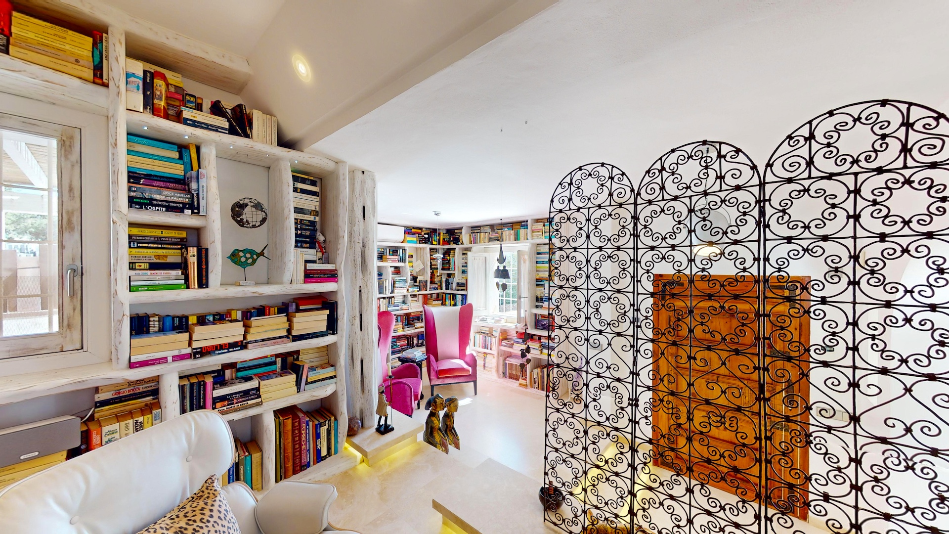 También dispone de una oficina y una preciosa biblioteca donde poder perderse entre libros.
